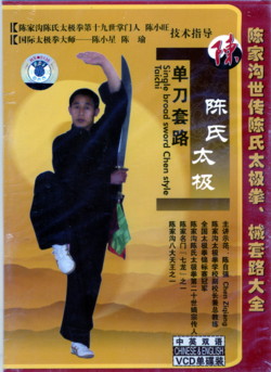 | Single Broadsword routine is one of the short weapons routine in Chen style taijiquan. It is short but full of essence, though short you can use it in many ways. The movements are vivid and are mainly splitting, chopping, lifting, and stabbing. The steps contain a spiraling, sweeping quality interspersed with jumping and turning. The single broadsword routine is delicate and strong, the metaphorical ideal being that one is "playing the sword like a tiger" powerful yet delicate. Since there are thirteen ways to play the broadsword. It is also called: "13 Forms Broadsword". | The movements are arranged such that every movement is distinctive. The movements are mainly chopping, pitting, hanging, stabbing, and knife dancing combining the movements of fists, eyes, and side-steps to swerve and evade attack in addition to the distinct firmness of motion that defines taiji. The 2 basic requirements of playing double broadsword are: wherever the knives come from, either from the center to the outside or from the outside to the center, they have to twine through your center to deliver strength. Due to the elaborate requirements of the fist movement, it is not easy to play double broadsword well. One should aim to achieve a level in which the knives flow like water, steps are light and quick without being messy, fluid and well paced without being labored. | ||||||||||||||||||||||||||||||||||||||||||||||||||||||||||||||||||||||||||||||||||||||||||||||||||||||||||||||||||||||||||||||||||||||||